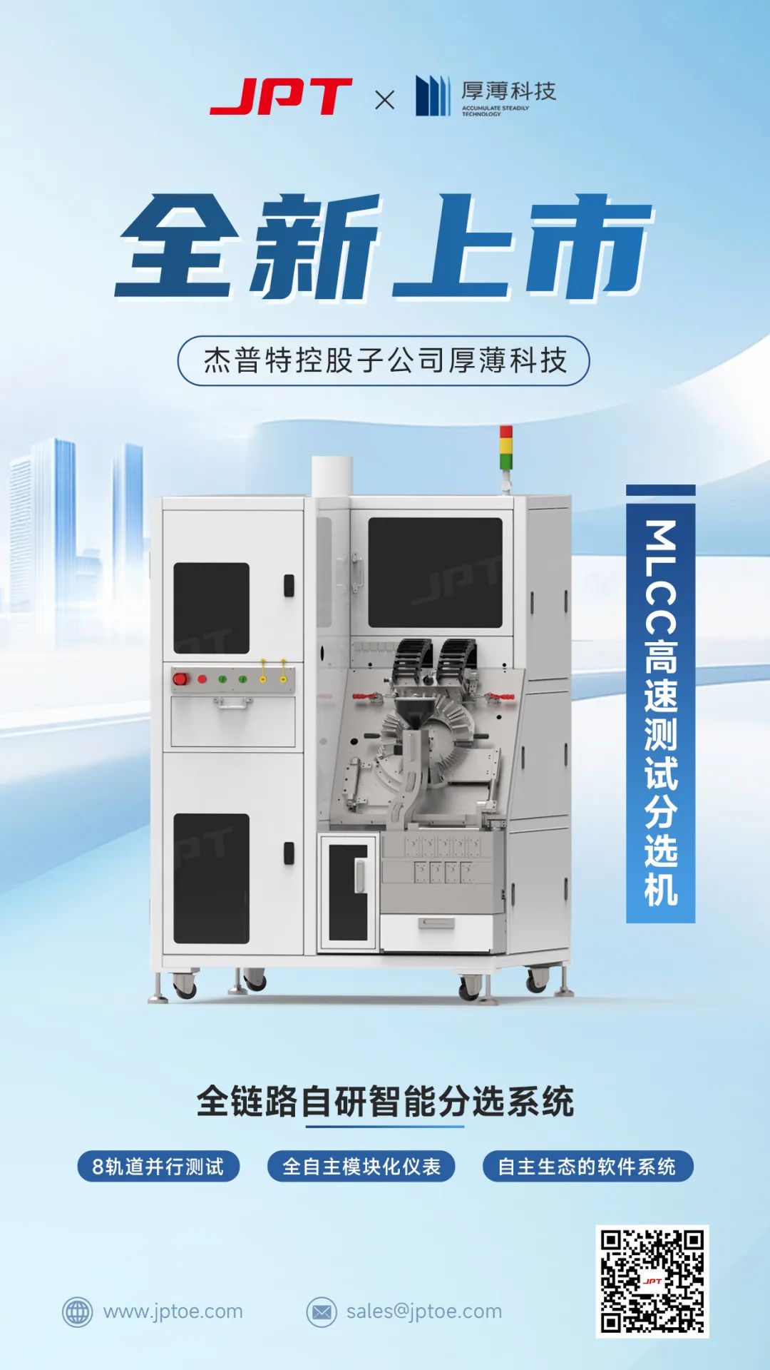 qg刮刮乐官网控股子公司厚薄科技,倾力打造MLCC高速测试分选机,以 “8轨道并行测试+全自主模块化仪表+自主生态的软件系统” 硬核架构,破解行业难题:
