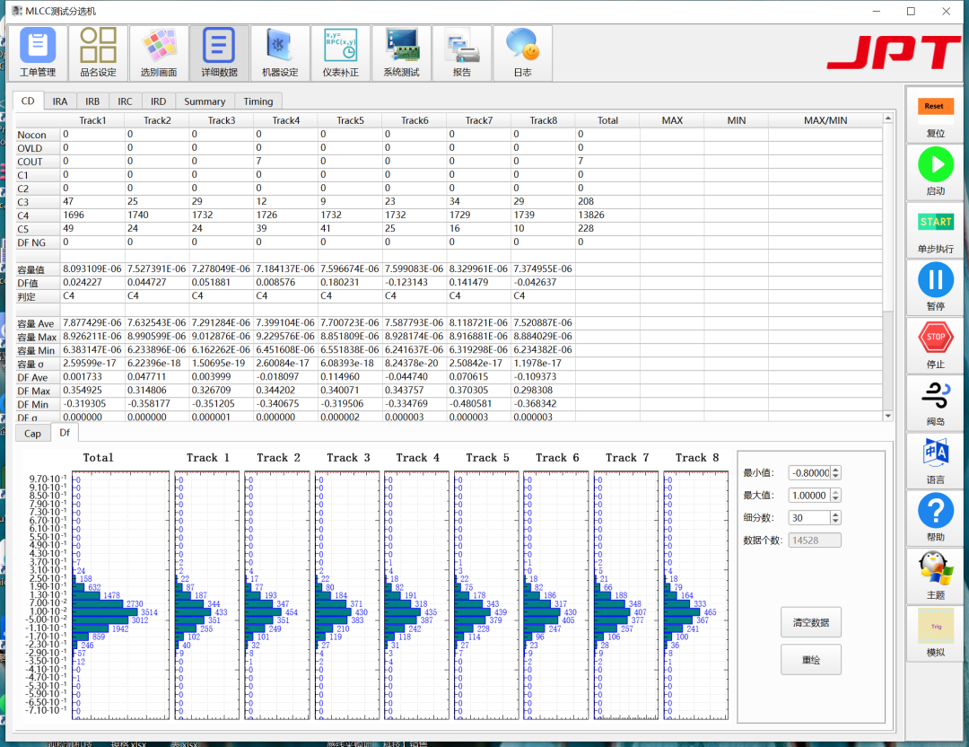 8条独立测试轨道同步运行(CD+DF模式);