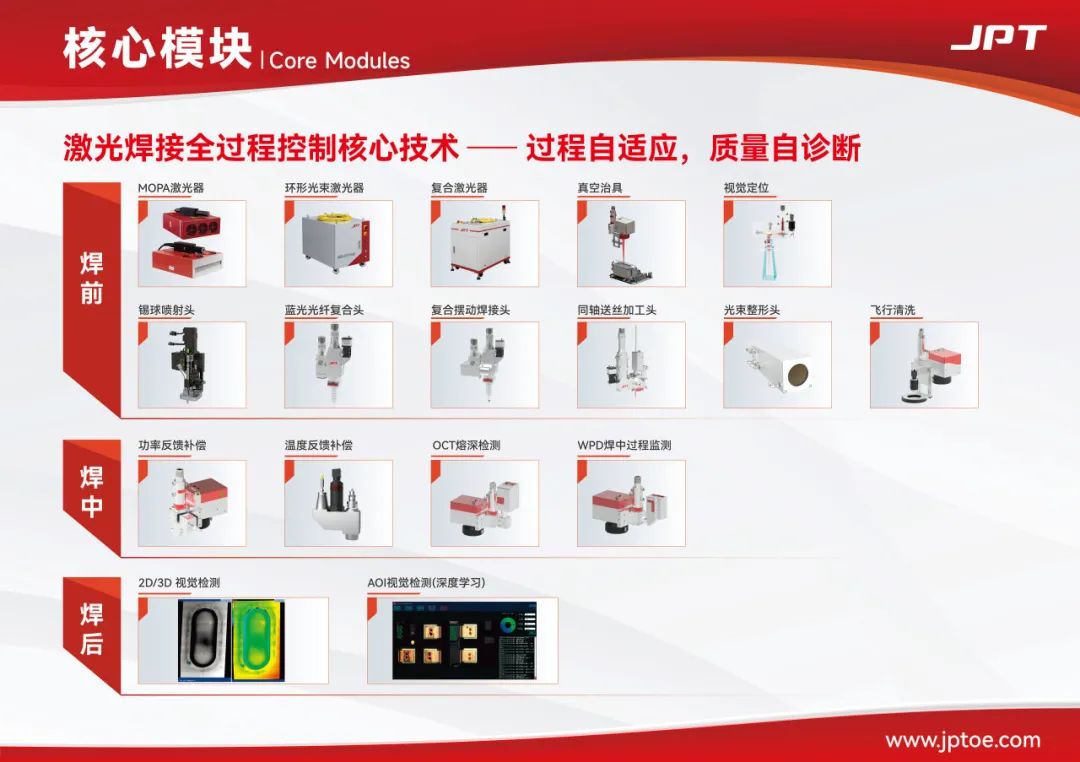 焊前阶段:涉及激光光束整形、激光焦点自动寻位技术、全幅面视觉定位技术以及OCT寻位等技术,确保加工精度;